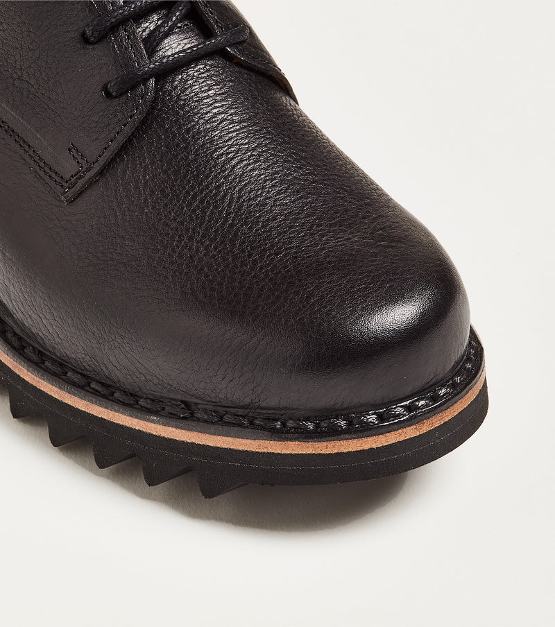 Derby made in Italy in pelle di vitello conciata al vegetale in colore nero.
