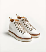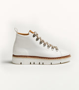 Sneaker alta made in Italy in pelle di vitello conciata al vegetale in colore bianco.